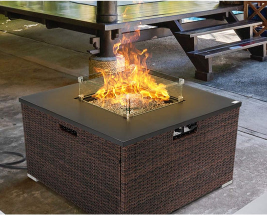 40,000 BTU Dark Brown Rattan Fire Table for Garden and Backyard with Waterproof Cover